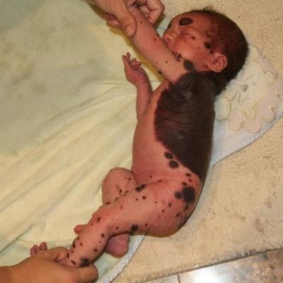 Le Naevus Géant Congénital (NGC) est une malformation de la peau présente dès la naissance (congénitale). Il se présente sous la forme d’un grand grain de beauté, pouvant recouvrir jusqu’à 80% de la surface corporelle d’un nouveau-né.